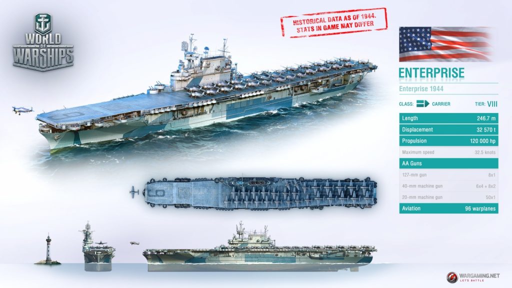 World of Warships'te CV-6 Enterprise... World of Warships, pek çok kişiye göre müthiş bir popülerlik kazanan kardeşi World of Tanks'den daha iyi bir oyun. Buna büyük ölçüde ben de katılıyorum. Oyunda gemiler ve haritaların sayısı da gün geçtikçe artıyor ve bugün "şimdiye kadar nasıl eklenmez?" diyebileceğimiz gemilerin sayısı bir elin parmakları kadar bile değil. Bunların arasında belki en önemlisi olan Enterprise, oyuna eklenen ikinci premium Amerikan uçak gemisi ve Tier 8 olarak içeriğe dahil edilmiş durumda. Merakla beklenmesi bir tarafa, bir alt tier'daki Saipan ile arasındaki fiyat farkının neredeyse iki katı olması sebebiyle, bu gemiyi almak isteyenlerin bile bir miktar ikilemde kaldığını söyleyebiliriz. Peki, ününü bir tarafa bırakırsak, Enterprise WoWs'de nasıl bir performans gösteriyor?